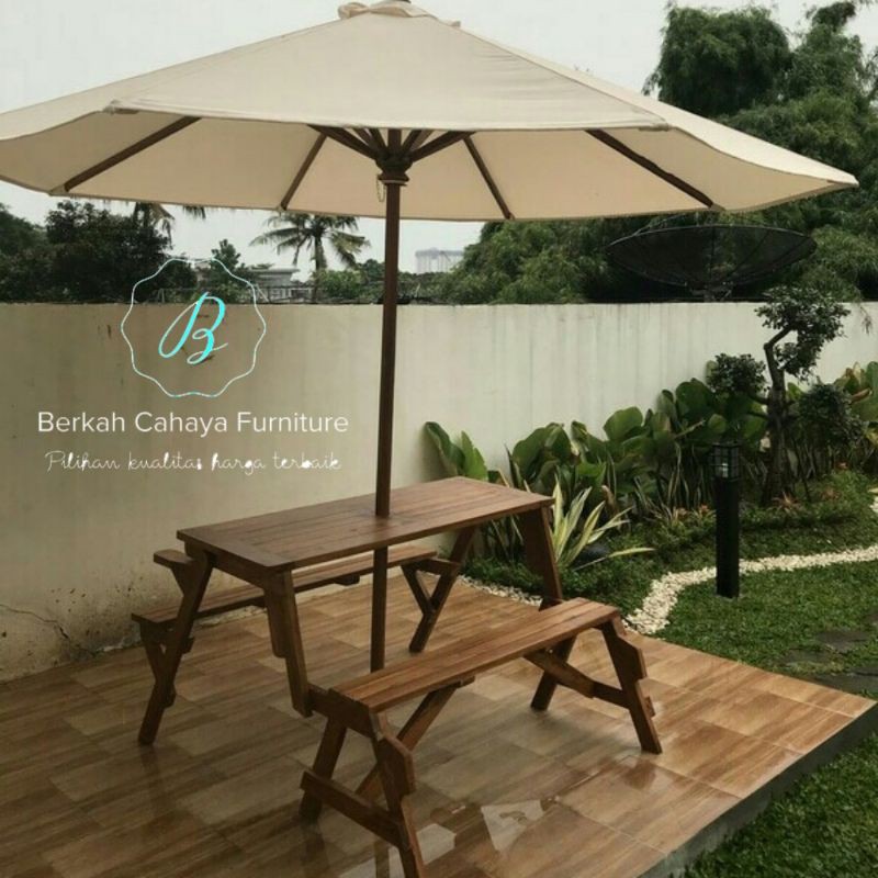 Jual Meja Payung Model Kotak Persegi Panjang Dengan Bangku Cocok Untuk
